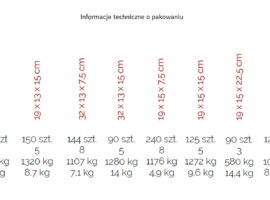 - Opakowanie w mkw.: dane na zdjęciu w galerii