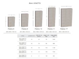 Bloki Venetto z oferty firmy Galabeton to seria w skład, której wchodzi pięć prostokątnych bloków o różnych rozmiarach.