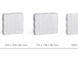 Kostka brukowa Koryntia z oferty firmy Galabeton to seria w skład, której wchodzą cztery elementy różniące się pomiędzy sobą wymiarami. Grubość kostek wynosi 6cm.