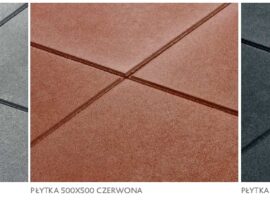 Płytka chodnikowa 500×500 STANDARD dostępna jest w trzech standardowych kolorach: szarym, czerwonym oraz grafitowym.